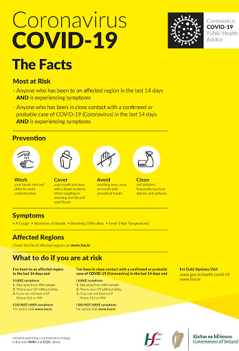 I was having lunch last week when a colleague from another department here stated that he thought that within two weeks that he thought that within a fortnight Maynooth University would be closed down owing to the threat from Covid-19 (the Coronavirus). I’m not sure whether he meant it seriously. At the time I thought that was extremely improbable but this morning we heard that a school in the Dublin area has been closed for two weeks because one of its students has the virus, and now I’m not so sure…