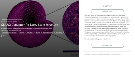 The second paper is the 11th paper in Volume 6 (2023) as well as the 76th in all; this one was published last Thursday (23rd March). This is another for the folder marked Cosmology and Nongalactic Astrophysics. The title is “GLASS: Generator for Large Scale Structure” and the paper is about a new code for the simulation of cosmological observables obtainable from galaxy surveys in a realistic yet computationally inexpensive manner. The code can be downloaded here. This is an interesting approach that contrasts with the “brute force” of full numerical simulations like those I discussed a few days ago.