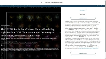 The title of this one is “The SPHINX Public Data Release: Forward Modelling High-Redshift JWST Observations with Cosmological Radiation Hydrodynamics Simulations” and it represents public data release of Sphinx20, a full box cosmological radiation-hydrodynamics simulation that provides a statistical sample of galaxies for comparison with those observed by JWST. It is in the folder marked Astrophysics of Galaxies.