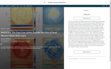 The last paper of this batch, also in the folder marked Astrophysics of Galaxies, is entitled “MAGICS I. The First Few Orbits Encode the Fate of Seed Massive Black Hole Pairs” and is a computational study of the process by which massive black holes are formed by merging smaller seed black holes. It was published on April 26th 2024 (i.e. yesterday). The authors are: Nianyi Chen, Diptajyoti Mukherjee and Tiziana Di Matteo (all Carnegie Mellon University); Yueying Ni (Harvard); Simeon Bird (University of California, Riverside); and Rupert Croft (Carnegie Mellon University). All authors are based in the USA.