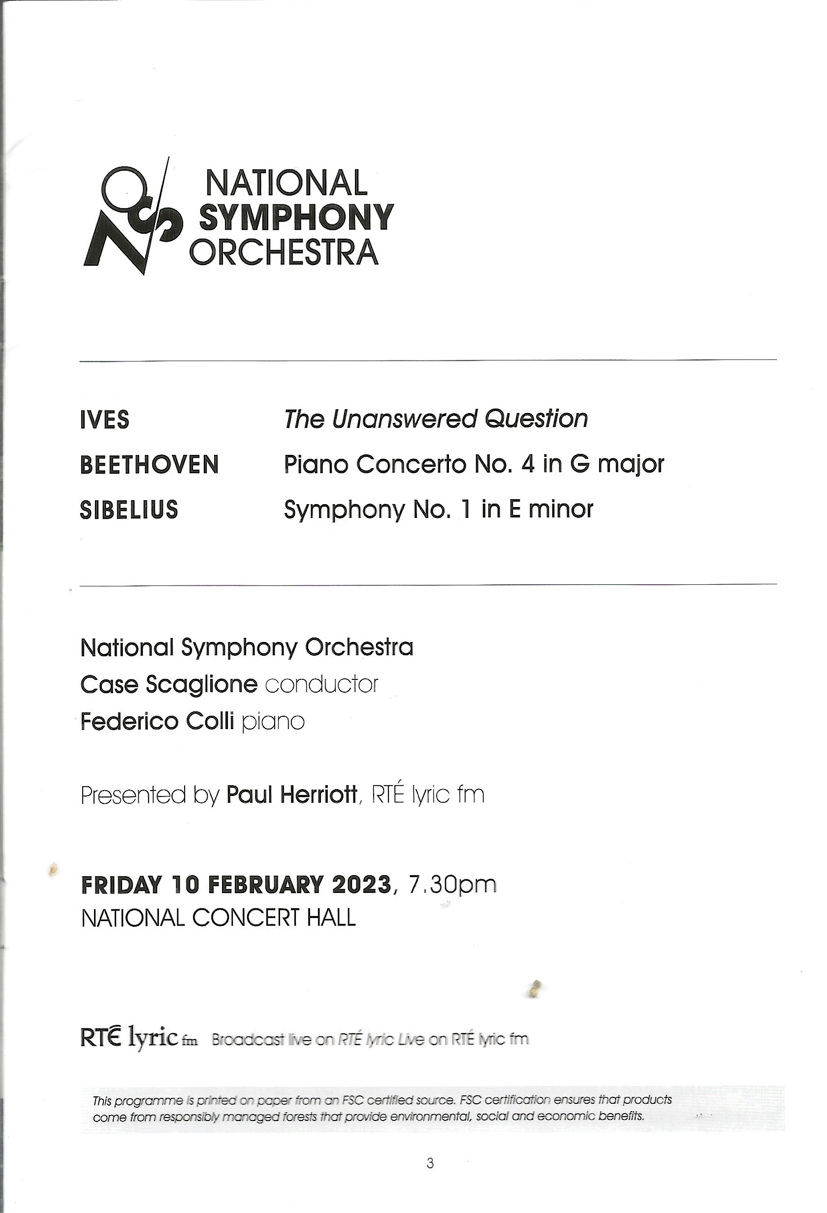 After that, and some rearranging on stage, we had a performance of Beethoven’s Piano Concerto No. 4 with Dublin-born soloist Hugh Tinney. Although for its time it was very unconventional in structure, this is now a very familiar piece in the concert hall. For the most part it was played very well but I did think the orchestra were a bit stiff and lacking in expression in places. The performance was warmly received by the NCH audience, and Hugh Tinney received a standing ovation at the end.