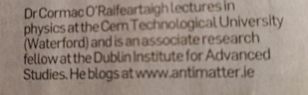 There’s an article in yesterday’s Irish Times by Cormac O’Raifeartaigh reviewing the situation.