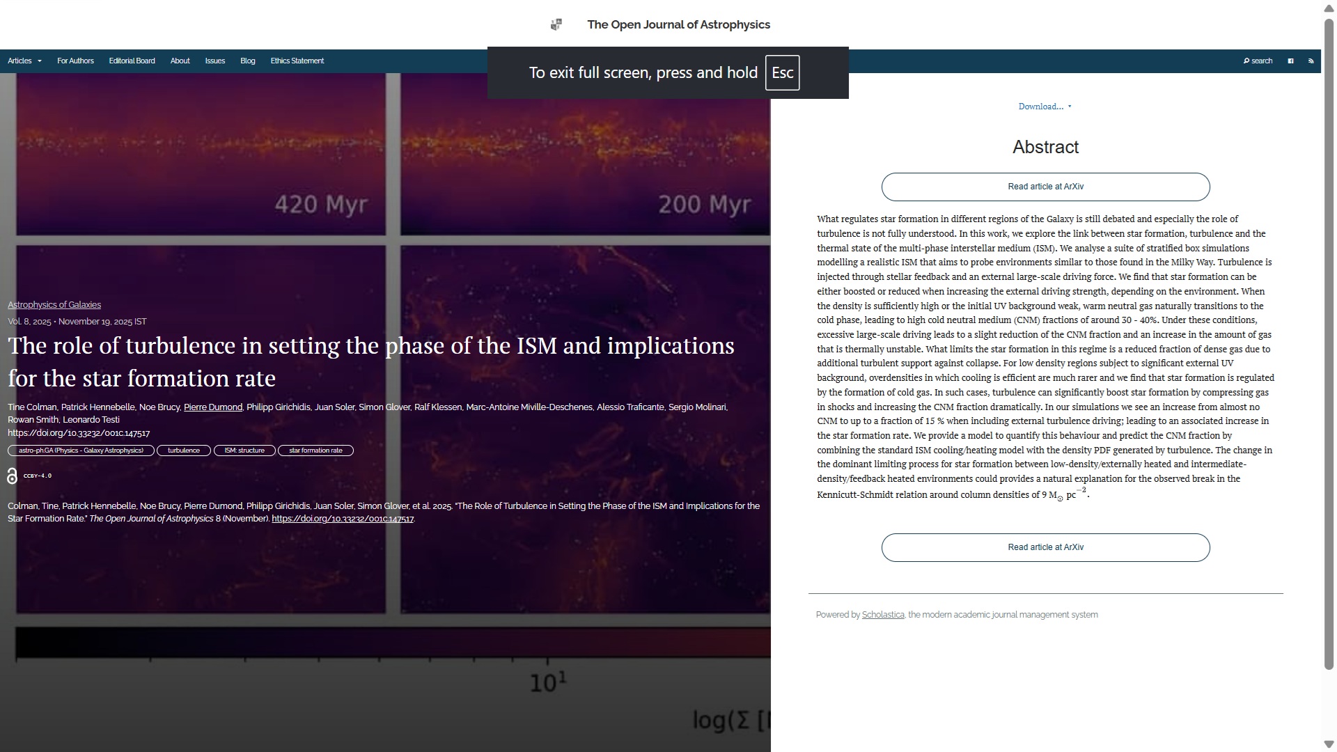 Next one up is “The role of turbulence in setting the phase of the ISM and implications for the star formation rate” by Tine Colman (Université Paris-Saclay, France) and 13 others based in France, Germany, Italy and the UK. This was published in the folder Astrophysics of Galaxies on Tuesday November 18th. It descrtibes using a suite of stratified box simulations to explore the link between star formation, turbulence and the thermal state of the multi-phase interstellar medium (ISM).