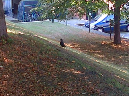 This morning a large group – I believe the correct collective noun is a murder – of crows gathered to give the bus a sendoff. I did think of Hitchcock’s The Birds but the birds in this case were more interested in rummaging through the rubbish bin than attacking any of us waiting for the bus. Incidentally, it was the anniversary of Daphne Du Maurier’s death on 19th April; she wrote the short story on which that film was based.