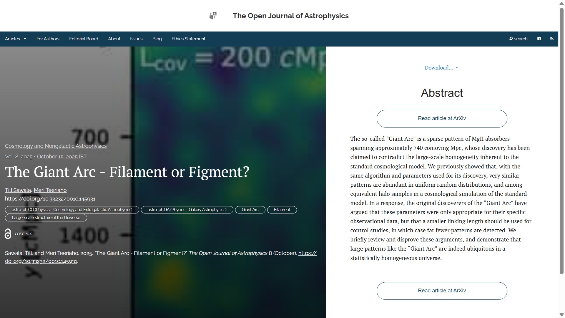 It may be a Bank Holiday weekend here in Ireland, but it’s still time for the usual Saturday update of the week’s new papers at the Open Journal of Astrophysics (although a bit later in the day than usual). Since the last update we have published another five papers, which brings the number in Volume 8 (2025) up to 161, and the total so far published by OJAp up to 396.