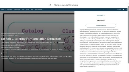 The last paper for this update is “On Soft Clustering For Correlation Estimators” by Edward Berman (Northeastern University, USA) and 13 others based in the USA, France, Denmark and Finland and Cosmos-Web:The JWST Cosmic Origins Survey. This was published on Friday 12th September 2025 in the folder Instrumentation and Methods for Astrophysics. It presents an algorithm for estimating correlations that clusters objects in a probabilistic fashion, enabling the uncertainty caused by clustering to be quantified simply through model inference. The overlay is here: