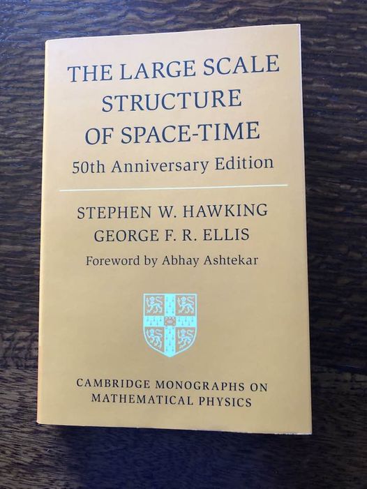 Today, 16th February 2023, sees the official publication of a special 50th anniversary edition classic monograph on the large scale structure of space-time by Stephen Hawking and George Ellis. My copy of a standard issue of the book is on the left; the special new edition is on the right. The book has been reprinted many times, which testifies to its status as an authoritative treatise. I don’t have the new edition, actually. I just stole the picture from the Facebook page of George Ellis, with whom I have collaborated on a book (though not one as significant as the one shown above).