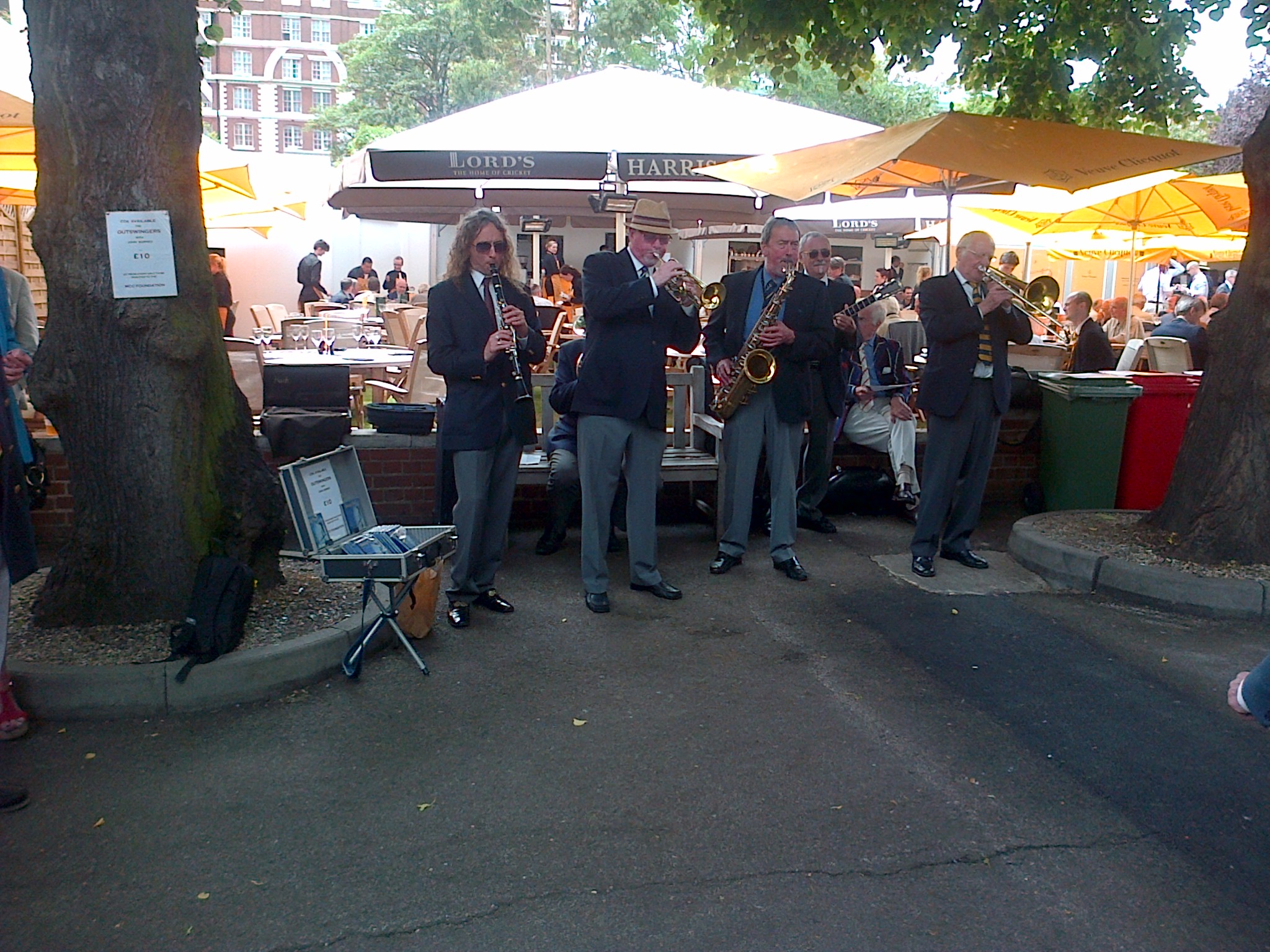 Just time for a quick post to record the fact that yesterday I made my annual pilgrimage to Lord’s Cricket Ground to watch the third day’s play of the First Test between England and New Zealand. On previous occasions I’ve had to make the trip from Cardiff to Paddington and back to take in a day at the Test, so had to get up at the crack of dawn, but this time I was travelling from Brighton which is a significantly shorter trip, so I only had to get up at 7 or so. Anyway, I got to the ground in time to have a bacon sandwich and a coffee before play started, with the added pleasure of listening to the jazz band as I consumed both items.