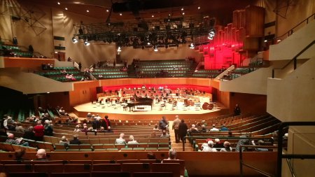 An interesting point about last night’s performance was the arrangement of the orchestra on stage. From the point of view of the Conductor, the first violins were on the far left (as usual), the cellos and basses were to the front and left, violas to the front and right, and second violins on the far right. I am not sure of the reason for this departure from tradition – second violins are usually adjacent to the firsts, with the cellos and basses on the right – but it was interesting how different it sounded compared to the usual layout.