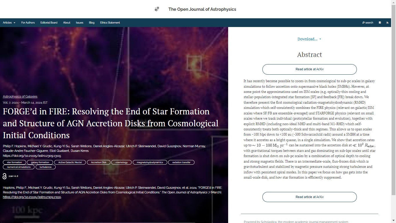 The second paper to announce is “FORGE’d in FIRE II: The Formation of Magnetically-Dominated Quasar Accretion Disks from Cosmological Initial Conditions” which is a study of the formation and properties of highly magnetized accretion disks using numerical simulations that include the effects of radiation, magnetic fields, thermochemistry, and star formation.