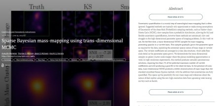 The primary classification for this paper is Cosmology and Nongalactic Astrophysics and its title is “Sparse Bayesian mass-mapping using trans-dimensional MCMC”. The paper describes a new trans-dimensional Markov Chain Monte Carlo sampler for mass-mapping, using wavelets, for the construction of mass maps from weak gravitational lensing which, as I’ve previously mentioned on this blog, is what the cool kids do these days.