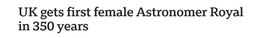 This is actually incorrect. Last time I looked, Scotland was still part of the United Kingdom, and Scotland has its own Astronomer Royal. That position has been held since 2021 by Catherine Heymans. Technically, therefore, the first female Astronomer Royal was Catherine not Michelle.