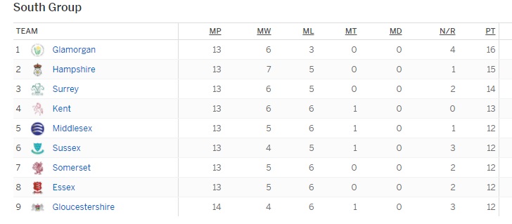 So there we are. For the first time since 2004, Glamorgan have qualified for the semi-finals of the Twenty20 competition, where they join Hampshire (who thrashed Derbyshire on Tuesday night); the two remaining quarter-finals are played tonight and tomorrow. Both semi-finals and the final are played on Saturday September 2nd at Edgbaston. David Miller, who had flown back for this match having played in South Africa the day before, was scheduled to bat at No. 4 last night but wasn’t needed. He may well get a game on Finals Day!