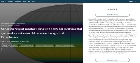 The latest publication is entitled Consequences of constant elevation scans for instrumental systematics in Cosmic Microwave Background Experiments. The authors are Daniel B. Thomas & Nialh McCallum of Queen Mary, University of London, and Michael Brown of the University of Manchester.