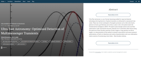 The latest publication is entitled  Ultra Fast Astronomy: Optimized Detection of Multimessenger Transients, and is in the section marked Instrumentation and Methods for Astrophysics.  The authors are Mikhail Denissenya of Nazarbayev University (Kazakhstan) and Eric V. Linder of the University of California at Berkeley (USA).