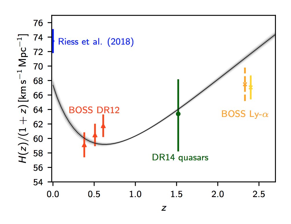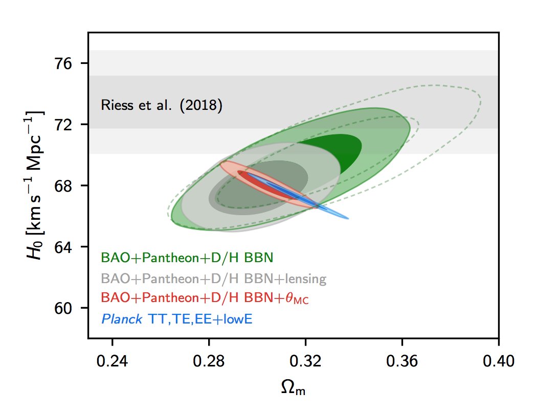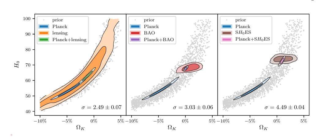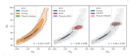 Figure 1 makes a rather neat point that the combination of Planck and Baryon Acoustic Oscillations does not separately give consistent values for the Hubble constant and the curvature and neither does the combination of Planck and direct Hubble constant estimates: