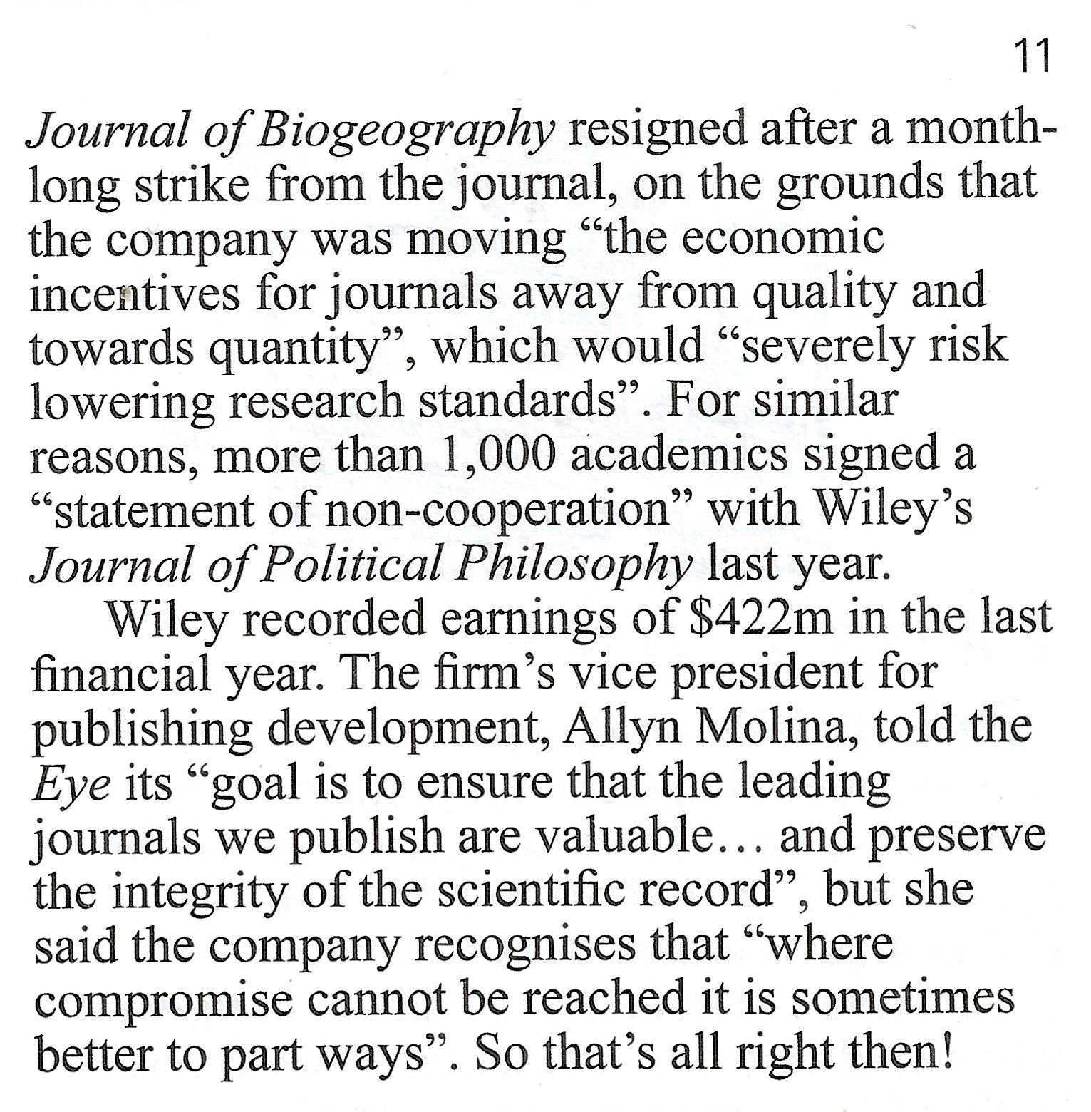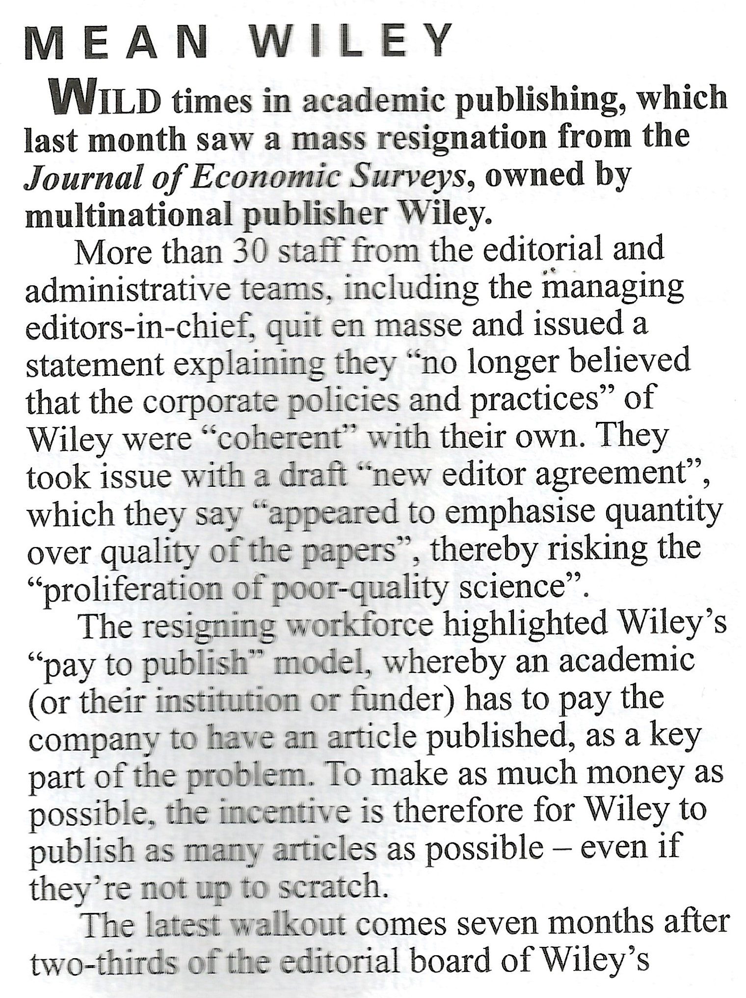 Posted in Open Access with tags academia, APC, DORA, John Wiley & Sons, Open Access, Private Eye, Publishing, research, San Francisco Declaration on Research Assessment on March 16, 2024 by telescoperI was interested to see that the latest issue of Private Eye contains a short item about academic publishing: