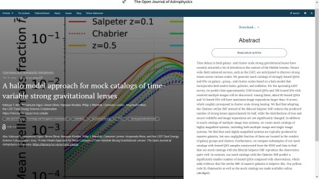 First one up is  “A halo model approach for mock catalogs of time-variable strong gravitational lenses” by Katsuya T. Abe & Masamune Oguri (Chiba U, Japan), Simon Birrer & Narayan Khadka (Stony Brook, USA), Philip J. Marshall (Stanford, USA), Cameron Lemon (Stockholm U., Sweden), Anupreeta More (IUCAA, India), and the LSST Dark Energy Science Collaboration. It was published on 27th January 2025 in the folder marked Cosmology and NonGalactic Astrophysics. The paper discusses how to generate mock catalogs of strongly lensed QSOs and Supernovae on galaxy-, group-, and cluster-scales based on a halo model that incorporates dark matter halos, galaxies, and subhalos.