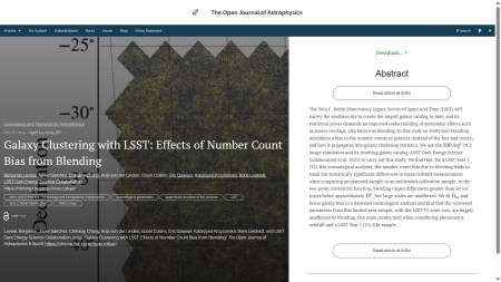 The first paper to report is “Galaxy Clustering with LSST: Effects of Number Count Bias from Blending” by Benjamin Levine (Stony Brook, NY), Javier Sánchez (STScI, MD), Chihway Chang (Chicago, IL) Anja von der Linden (Stony Brook), Eboni Collins (Dillard, LA), Eric Gawiser (Rutgers, NJ), Katarzyna Krzyżańska (Cornell, NY), Boris Leistedt (Imperial College, UK) on behalf of the LSST Dark Energy Science Collaboration.