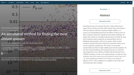 The second paper of the week, published on Tuesday 30th July in the folder Instrumentation and Methods for Astrophysics, is “An automated method for finding the most distant quasars” by Lena Lenz, Daniel Mortlock, Boris Leistedt & Rhys Barnett (Imperial College London, UK) and Paul C. Hewett (U. Cambridge, UK)”.  This paper presents an automated, reproduceable and objective high-redshift quasar selection pipeline, tested on simulations and real data from the Sloan Digital Sky Survey (SDSS) and UKIRT Infrared Deep Sky Survey (UKIDSS). The overlay is here: