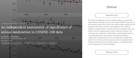 The latest publication is entitled “Search for a distance-dependent Baryonic Tully-Fisher Relation at low redshifts” and is written by by Aditi Krishak (IISER-Bhopal, India) and Shantanu Desai (IIT Hyderabad, India).