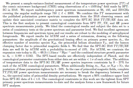 I’m not meant to be blogging these days but I thought I’d break radio silence to draw attention to a new paper on the arXiv by Hanson et al. from SPTpol, an experiment which aims to measure the polarization of the cosmic microwave background using the South Pole Telescope. One of the main aims of experiments such as this is to measure the so-called “B-mode” of polarization (the “curl” component of the polarization signal, which possesses a handedness) because this holds the key to direct detection of a number of interesting cosmological phenomena such as the existence of primordial gravitational waves. However, primordial effects aren’t the only way to generate B-mode polarization. Other “foreground” effects can do the job too, especially gravitational lensing can also generate a signal of this form. These “late-time” effects have to be understood before the primordial contribution can be isolated.