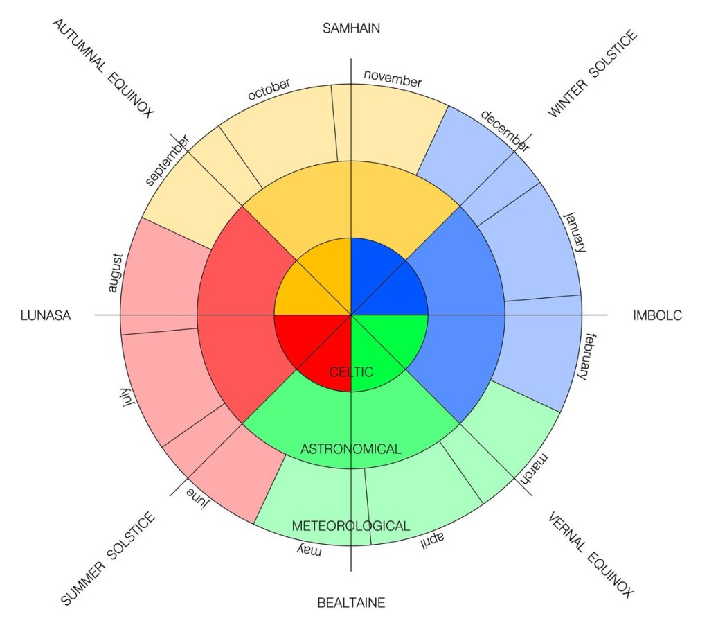 The timings are rough because the dates of the equinoxes and solstices vary from year to year. Imbolc is often taken to be the 2nd of February (Groundhog Day) and Samhain is sometimes taken to be October 31st, Halloween but hopefully you get the point that although the Pagan festivals have been appropriated by the Christian church, they have much older origins.