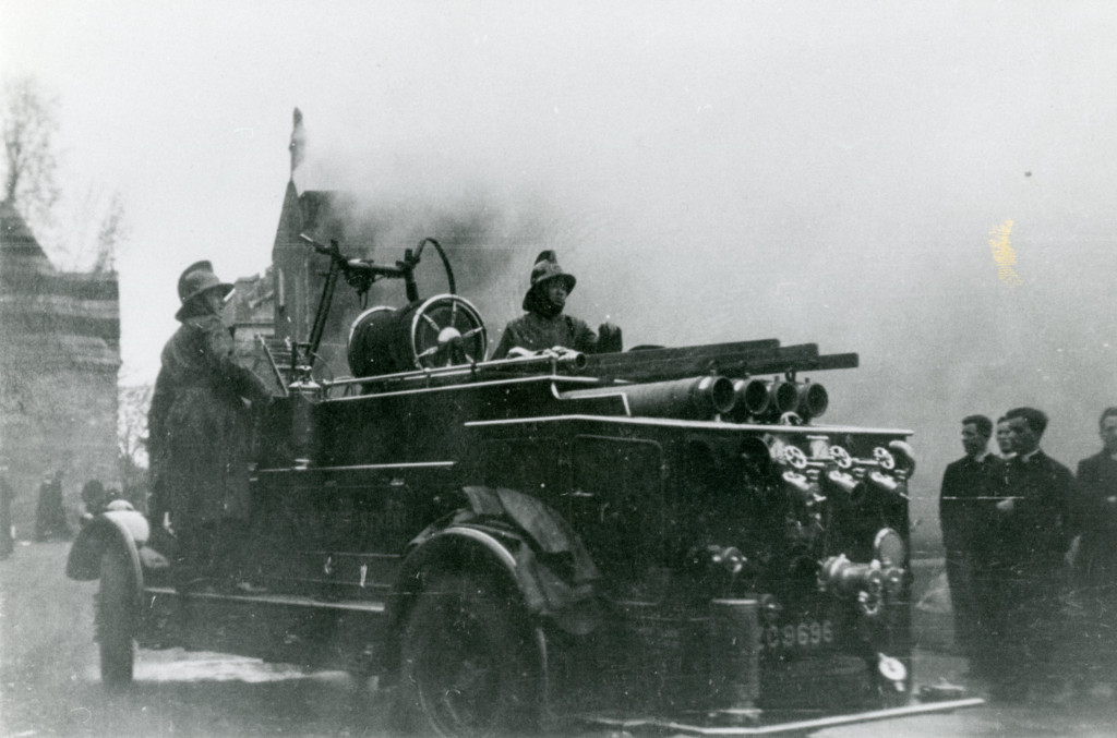 Dublin fire brigade attending the fire at New House, 29 March 1940.