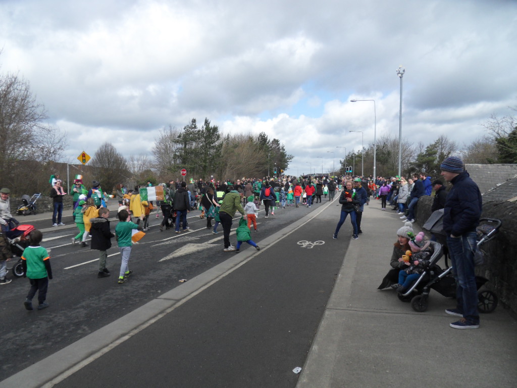 This morning I watched the Parade in Maynooth. It didn’t rain, but it was a strangely subdued affair notable for the lack of music. The isn’t much of an atmosphere if the participants are walking along in silence! You can’t have Craic agus Ceol if there’s no Ceol. I only counted two tractors too; usually there are many more than that. Fortunately, I have a calendar that offers a tractor for every month to make up for this disappointment. Still, it was good to see the kids enjoing themselves. The highlight for me this year was the Coakley Septic Tank Cleaning Truck, which just outdid the Thornton’s Refuse Collection Vehicle for sheer splendour.