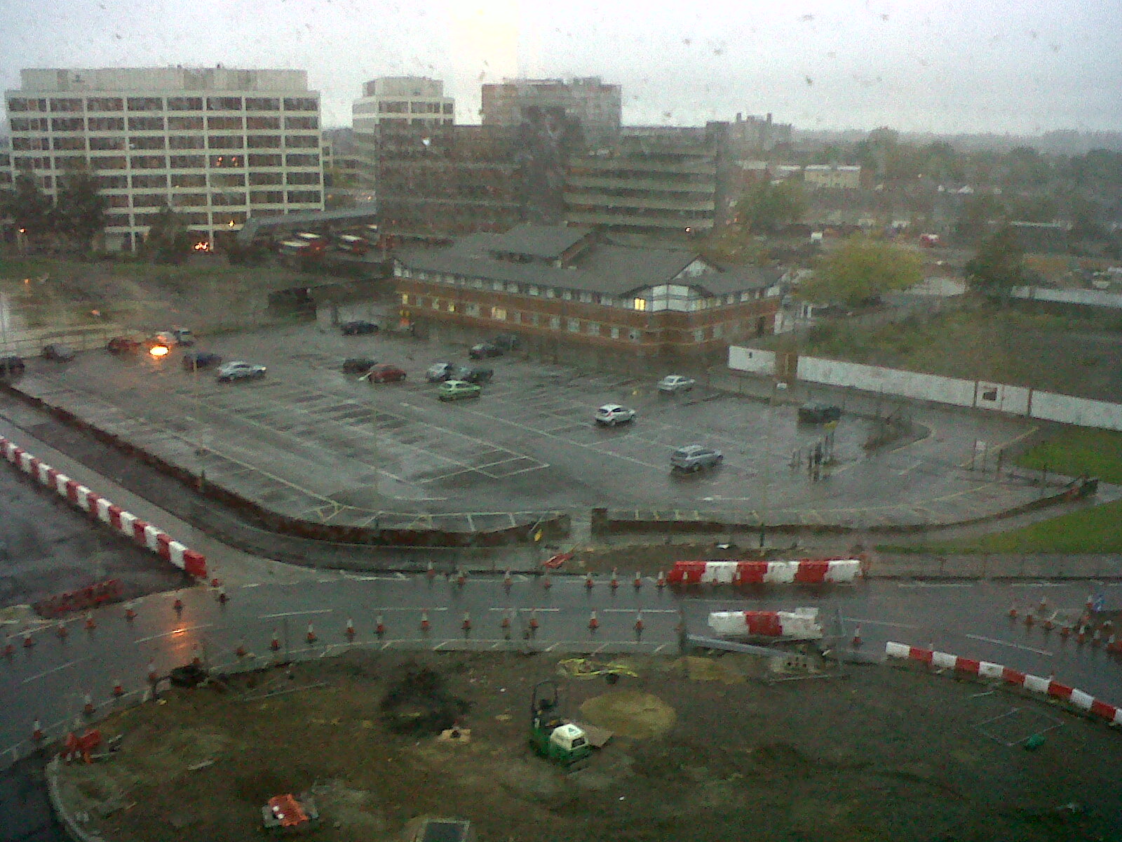 Anyway, we got through yesterday’s business reasonably well, although it was a long day and we were all flagging by the end. I guess that’s why they call it Swindon Wilts. We’re just about to commence Day Two so I’ve just got time to put up the following picture. For those of you who’ve never been to Swindon before, I believe this photograph conveys an accurate impression of what it’s like. This is the view through the rain from my hotel window yesterday evening.