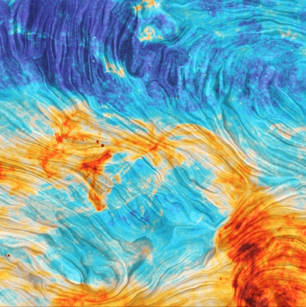 Still, that doesn’t mean that there is no polarization data at all. There is for example, this rather beautiful visualization of the polarized emission at 353 GHz, together with the Galactic magnetic field, shown over a thirty-degree square region of the sky: