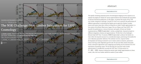 The latest paper is the 8th paper in Volume 6 (2023) as well as the 73rd in all. This one is another one for the folder marked Cosmology and Nongalactic Astrophysics. The title is “The N5K Challenge: Non-Limber Integration for LSST Cosmology”. The paper is about ways of avoiding using the ubiquitous Limber Approximation which, I discovered this morning, is now 70 years old, Nelson Limber’s original paper on the subject having been published in January 1953.
