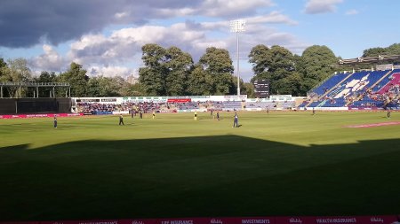 After indifferent weather all day it turned out nice for this evening’s Twenty20 match at Sophia Gardens between Glamorgan and Hampshire. It was a good night for Glamorgan too, as they won by 8 wickets, making it a run of five victories in a row.