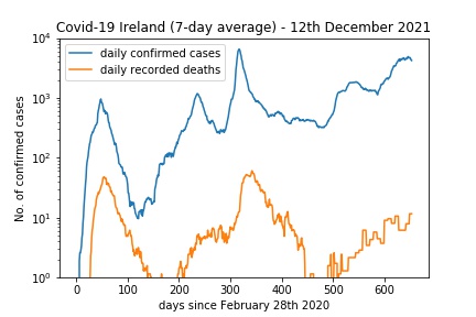 This obviously doesn’t translate into a direct measure of the efficacy of vaccines (not least because many of the recent cases and deaths are among the minority of unvaccinated people in Ireland) but it does demonstrate that there is a vaccine effect. Without them we would be having death rates up to ten times the current level for the same number of daily cases or, more likely, we would be in a strict lockdown.
