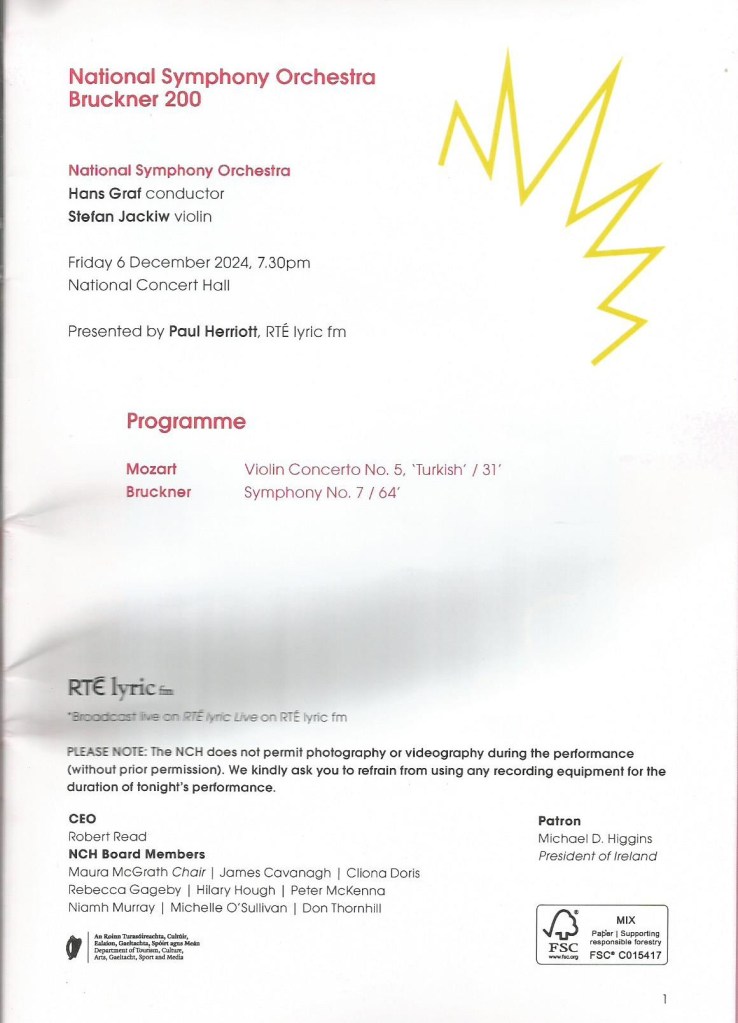 The National Symphony Orchestra Ireland may not be the Berlin Philharmonic but I was generally very impressed, there was split note in the brass section near the end, but this was a minor blemish. The performance was very warmly received by the audience. The NCH wasn’t full, but it was quite a good attendance.