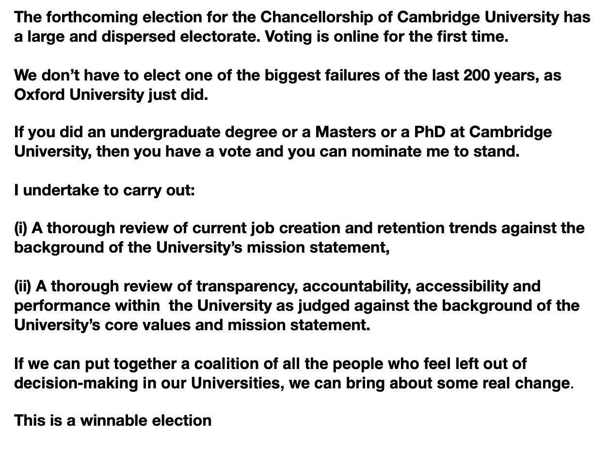 Though this incident occurred some time ago, nothing much seems to have changed at Cambridge University.